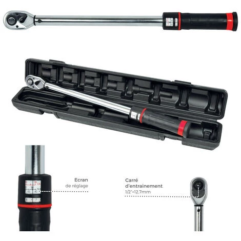 Cette clé dynamométrique permet d’appliquer un couple de serrage de 40 à 200 Nm sur un écrou, un boulon.