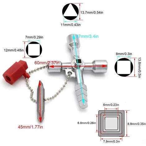 Clés Universelles 4 en 1 résout parfaitement votre problème La clé instrument multifonction convient à la plupart des compteurs d’eau et d’électricité, compteurs de gaz, armoires de commande et ascenseurs du marché.