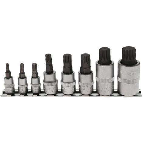 Jeu de 8 douilles mâles à embout XZN (empreinte multidents) de M4 à M16 pour cliquet.
