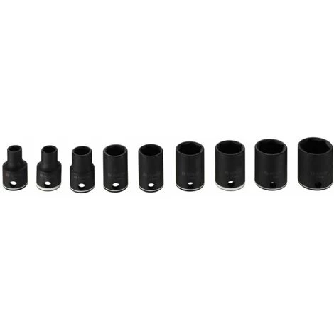 Bosch Sockets définis. 9 pi?ces. 30 mm. 7 – 1 • 9tlg. Set Sockets Sockets définis. 9 pi?ces. Contenu de l’ensemble: Longueur: 30 mm. Taille de la clé: 7/8/10/12/13/15/16/17/19 mm. Shank: 3/8. Prise robuste ISO 2725-1 pour vis six pans. Hochleistungsschraubwerkzeuge acier spécial de fusion spécial. réalisés dans le processus de forgeage chaud. Ceci assure une compression maximale du matériau. dureté excellente. Grande ténacité des matériaux et de longue vie. Dimensions Largeur: 41 mm