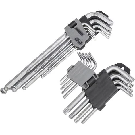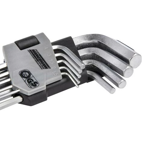 - En acier au chrome-vanadium, jeu de clés à broches chromées mat 9 pièces, long côté avec tête sphérique dans un support rabattable , jeu de clés à profil en T 9 pièces, dans un support rabattable Ce texte a été traduit par une machine.