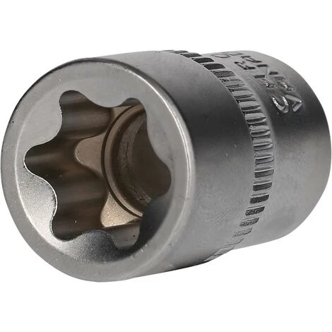 La douille Torx E BRILLIANT TOOLS BT021839 est conçue pour le serrage et le desserrage faciles de vis avec entraînement Torx E. L’insert métrique court a un entraînement carré 3/8″ (10 mm) fabriqué selon la norme DIN 3120. La taille de clé est E16. La douille a une longueur totale de 28 mm. La surface est chromée mate sur le côté entraînement et sur le côté six pans creux, elle est séparée par un moletage droit.