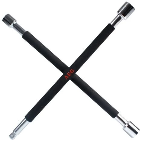 Clé en croix démonte-roue. Avec 3 douilles : 17/19/21mm et carré 1/2 ». Un revetement mousse antiglisse gaine les zones de maintien. Il apporte un vrai confort a l’utilisation. Acier inoxydable haute qualité.