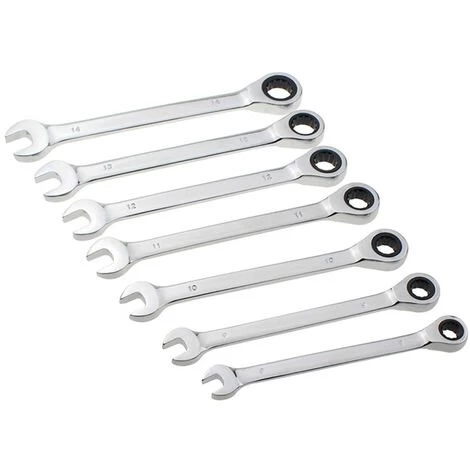 - 12 clés à cliquet comprenant 8 mm, 9 mm, 10 mm, 11 mm, 12 mm, 13 mm, 14 mm, 15 mm , 16 mm, 17 mm, 18 mm et 19 mm + boîtier noir