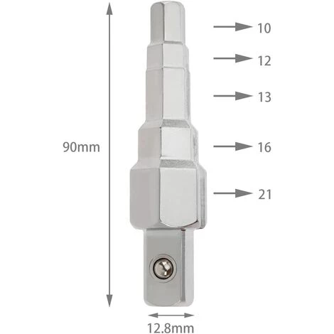 La clé à radiateur étagée dispose de 5 tailles différentes, y compris 10 mm, 11 mm, 12,5 mm, 16 mm et 21 mm.