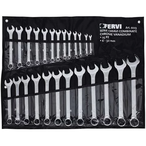 COFFRE DE JEU 25 PIÈCES CLÉ PLATE MÉTRIQUE OUTIL 6-32 MM FERVI 0223