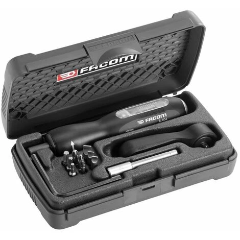 FACOM jeu de clé dynamométrique • Classe II Type D (travaux d’entretien A.400). • Tournevis dynamométrique avec un sens de rotation à droite le couple de serrage. • Sortie Allen pour une utilisation avec inserts vis de la série 1 – • livret avec lecteur 4.1 » 1.4 pour une utilisation avec une poignée avec A.300PA réversible du type à cliquet. • Poignée avec cliquet (A.300PA). • Clé à modeler, 4 mm. • Livré dans une boîte avec certificat d’étalonnage et le numéro d’identification personnel.