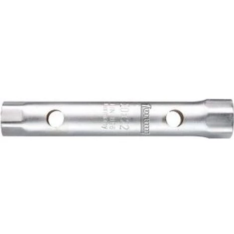 Clé tube, Cote s/plats : 19 x 22 mm, Longueur 170 mm, Pour Ø de broche 12 mm – Chromé – Tube d’acier étiré sans joint – DIN 896 B, ISO 2236, ISO 1085 – Perçage continu pour actionner la broche