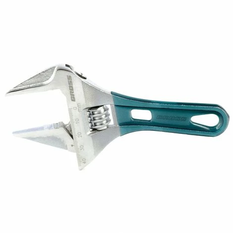La clé à molette GROSS est conçue pour les travaux de montage / démontage. Son principal avantage est qu’elle permet de travailler aussi bien avec de petites pièces qu’avec des grandes (jusqu’à 43 mm). Ses parties travaillantes son 50% plus résistantes que la norme et possède une protection anti-dérapante permettant un travail précis et efficace.La haute qualité de l’acier chrome vanadium sélectionné pour la conception de la clé lui garantit une longue durée de vie et une résistance accrue. La clé est revêtue de chrome et n’est donc pas sensible à la corrosion.Le gabarit et la poids de l’outil permettent à l’utilisateur une utilisation prolongée sans fatigue.Informations techniques :- Taille : 160 mm- Ouverture : 43 mm