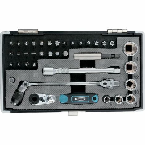 L’ensemble GROSS est conçu pour la réalisation d’une large gamme de travaux de montage / démontage. Il comprend 37 pièces dont : – 26 embouts de différents types et tailles : PH 0-3, PZ 1 à 4, Sl 3-6, TORX et TT 10, 15, 20, 25, 27, 30, 40, HEX 3-6 (voir photo)- 6 douilles de différentes tailles : 5 mm, 7 mm, 8 mm, 10 mm, 12 mm, 14 mm (voir photo)- 1 clé à cliquet 52 dents, permettant un travail précis et efficace. La poignée est ergonomique caoutchoutée et offre un confort de travail accru sans risque de glissement.- 1 rallonge permattant l’accès à des endroits difficiles d’accès- 1 charnière de transmission, permettant de travailler sur n’importe quelle fixation, parfois dans des endroits difficiles d’accès, sous n’importe quel angle.Tous les embouts sont fabriqués en acier allié japonais et sont alors extrêmement résistants et durables.L’ensemble est vendu dans une mallette robuste confortable avec poignée, facile à stocker et à transporter.