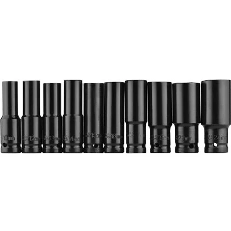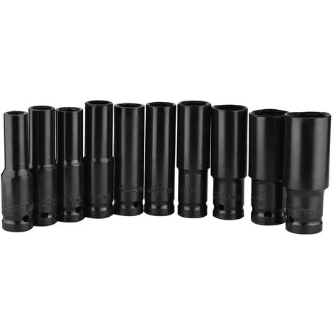 Les tailles les plus utilisées sont incluses – L’ensemble comprend des douilles à impact à couple élevé de 1/2 pouce (métriques): 10 mm, 12 mm, 13 mm, 14 mm, 15 mm, 17 mm, 19 mm, 21 mm, 22 mm, 24 mm et avec une longueur de 80 mm de long.