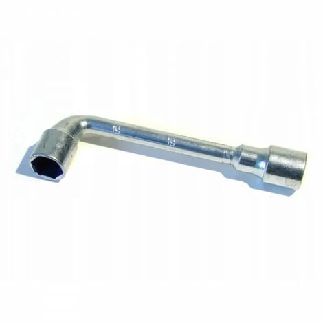 Clé à douille à douille percée 10 mm crv_x000D_Clé en acier à outils au carbone (CRV)._x000D_D’un côté, la mâchoire est fermée (douille hexagonale) et droite._x000D_De l’autre côté, la mâchoire de la tête est fermée (douille hexagonale), très fortement pliée à 90°,_x000D_Avec un trou traversant pour un travail facile avec une clé sur de longs boulons._x000D_Taille : 10 mm_x000D_Outils, Clés