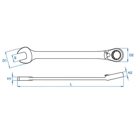 - Clé mixte : Clé mixte à cliquet réversible métrique 22 mm L. 290 mm
