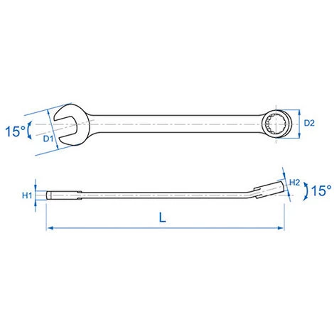 - Clé de serrage : Clé mixte, fourche et oeil à 15° – 21 mm L. 255 mm
