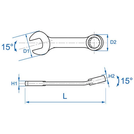 - Clé mixte : Clé mixte mini métrique à oeil 15° – 10 mm – L. 95 mm