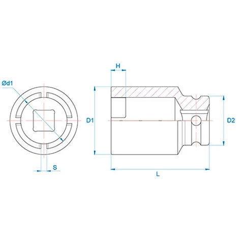Pour desserrer et serrer les écrous à encoches de roulement à billes DIN 981. Paroi fine. Utilisation possible avec des rallonges, cliquets, etc. Application : Dépose et pose de roulements, roues dentées, roulements à rouleaux coniques, roulements à billes, etc. Camions, engins de chantier, de construction, municipaux, forestiers, etc. Empreinte : TMFS 8. H 12,5 mm. D 5,6 mm. D1 : 73 mm. D2 : 30 mm. ød1 : 60,4 mm.