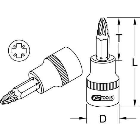 - Carré d’entraînement intérieur selon DIN 3120 / ISO 1174 avec encoche pour verrouillage par bille