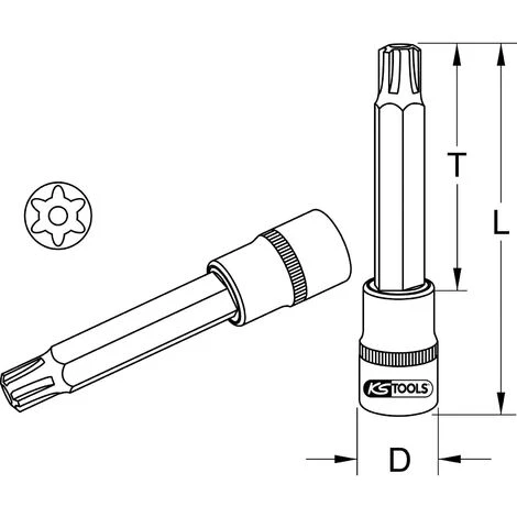 - Carré d’entraînement intérieur selon DIN 3120 / ISO 1174 avec encoche pour verrouillage par bille