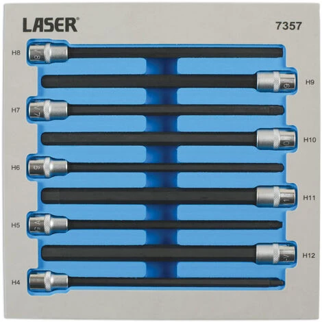 Douilles 6 pans extra longues moletées pour faciliter la prise.