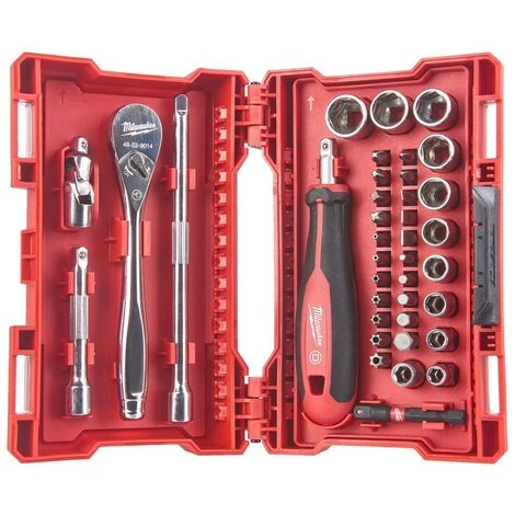 Set de douilles et clés à cliquet 1/4″ avec Embouts 38pcs Milwaukee 4932479096