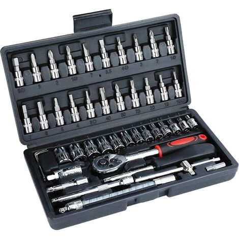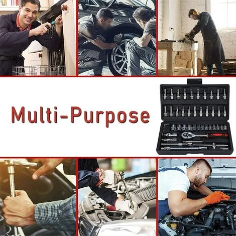 Jeu de clés à douille: comprend 21 embouts de douille d’entraînement, 13 jeux de douilles, 3 clés Allen L, 1 pièce de joint universel, 2 pièces de barre d’extension, 1 pièce de barre d’extension flexible, 1 pièce de barre en T coulissante, 1 pièce de cliquet à dégagement rapide , 1 pièces Poignée Spinner, 1 pièces Adaptateur d’embout, 1 pièces Boîte à outils.