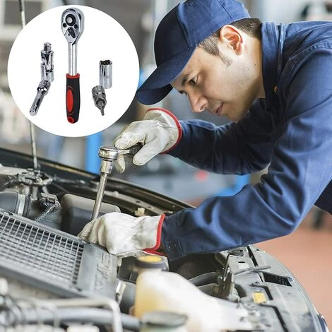 Poignée à cliquet 1/4 « : avec poignée à cliquet ergonomique 1/4 », qui est confortable pour la prise, et le cliquet réversible peut facilement enlever les embouts et la douille.