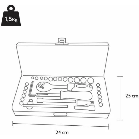 La boîte à outils Tx est un coffret en acier avec clés à cliquet, clés à six pans creux et tournevis, parfait pour les particuliers et les professionnels qui ont besoin d’une solution pratique et bien organisée.