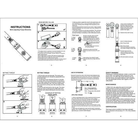 Clé dynamométrique préréglée avec couple réglable, échelles marquées dessus pour une lecture et une utilisation faciles, bouton de verrouillage de style tirer/pousser sécurise le couple sélectionné contre tout changement accidentel.