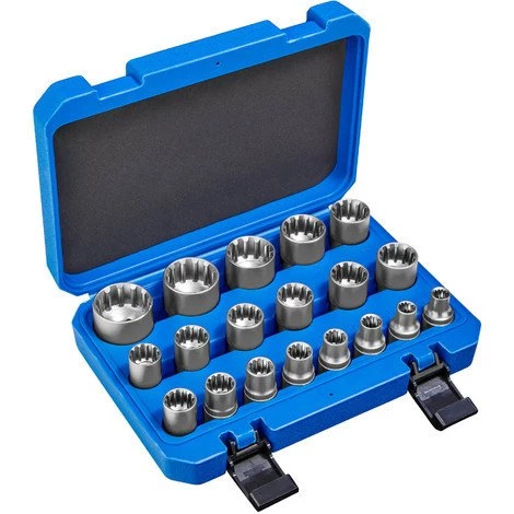 - Ensemble de 19 clés à douilles multi-empreinte.
