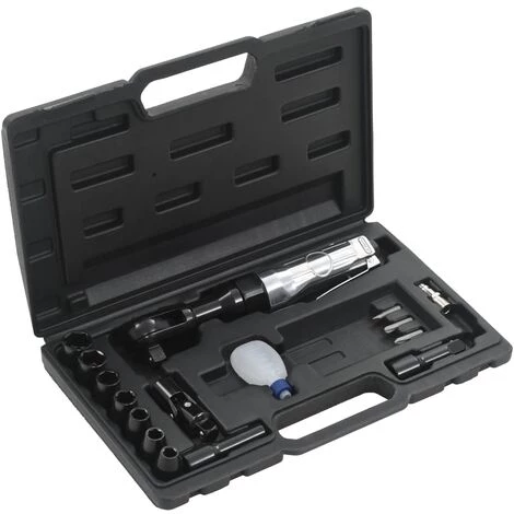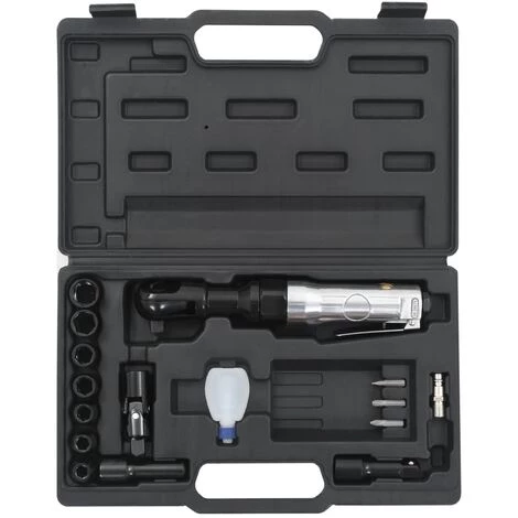 Ce kit contient 1 clé à cliquet pneumatique, 7 douilles de différentes tailles, 1 barre d’extension, 1 mamelon, 1 joint universel, 1 réservoir d’huile, 1 porte-embouts, et 3 embouts. Cet ensemble d’outils est indispensable pour les garages et les ateliers.