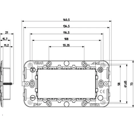 Support 4 modules avec vis, pour les boîtes 4 modules (fruits). Ce support permet d’accrocher uniquement les plaques Vimar Arkè.