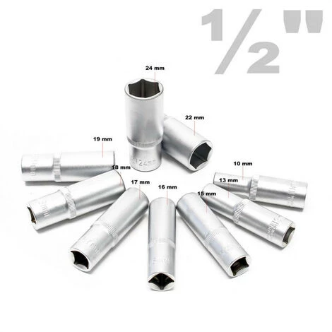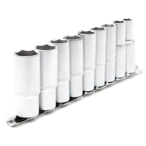 Assortiment de douilles longues et métriques 6 pans de 10 à 24 mm – 9 pièces.