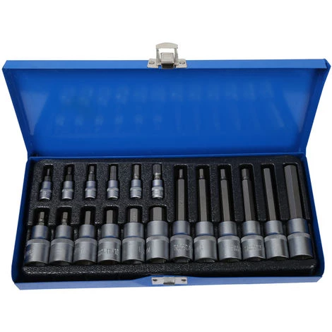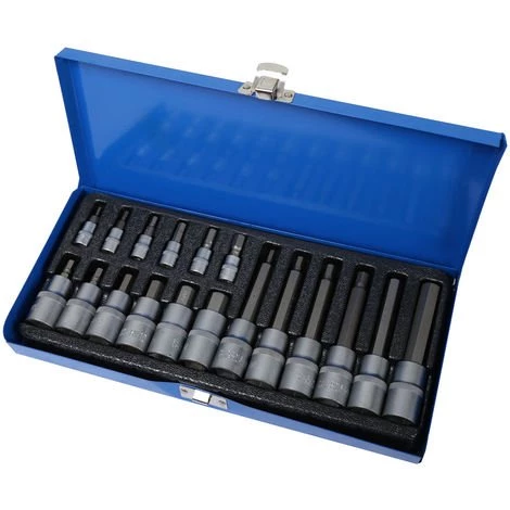 Jeu 18 douilles à six pans creux Acier chrome vanadium Coffret métal